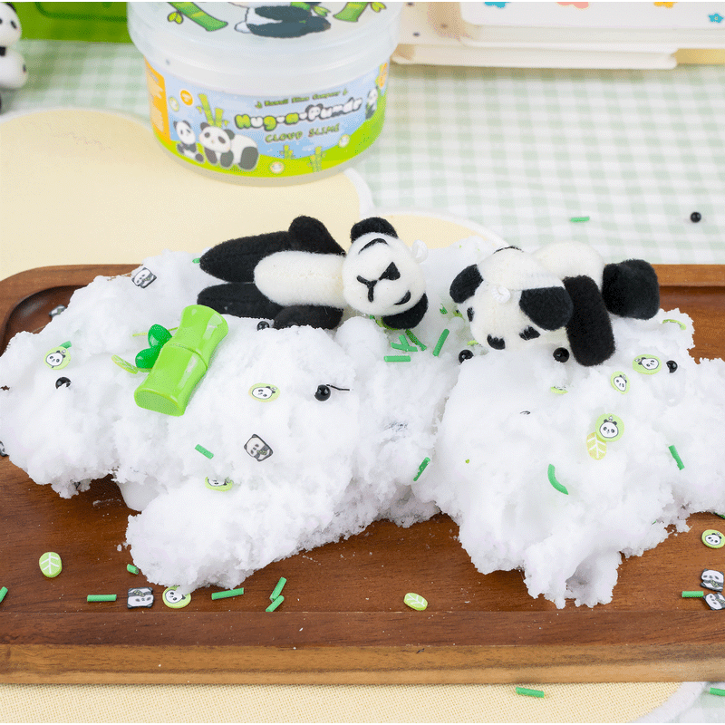 Have you ever wondered what it’s like to hug a panda? 🐼 Now you can find out with Hug-A-Panda Slime! This fluffy and soft cloud texture is perfect for fluffing up and drizzling, giving you all the cozy feels. With a touch of "forest" glitter and a sweet vanilla bamboo scent, it’s like being wrapped in a panda cuddle! Each Slime comes with kawaii panda charms and a fun sprinkle mix to make your squishy experience even more magical. Stretch, squish, and enjoy the fuzzy, cuddly goodness of Hug-A-Panda Slime!
